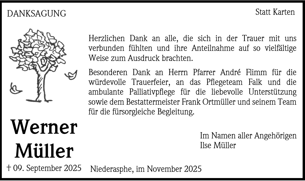 Die Beerdigung findet am Montag, dem 15. September 2025 um 14.00 Uhr von der Friedhofskapelle in Niederasphe aus statt.